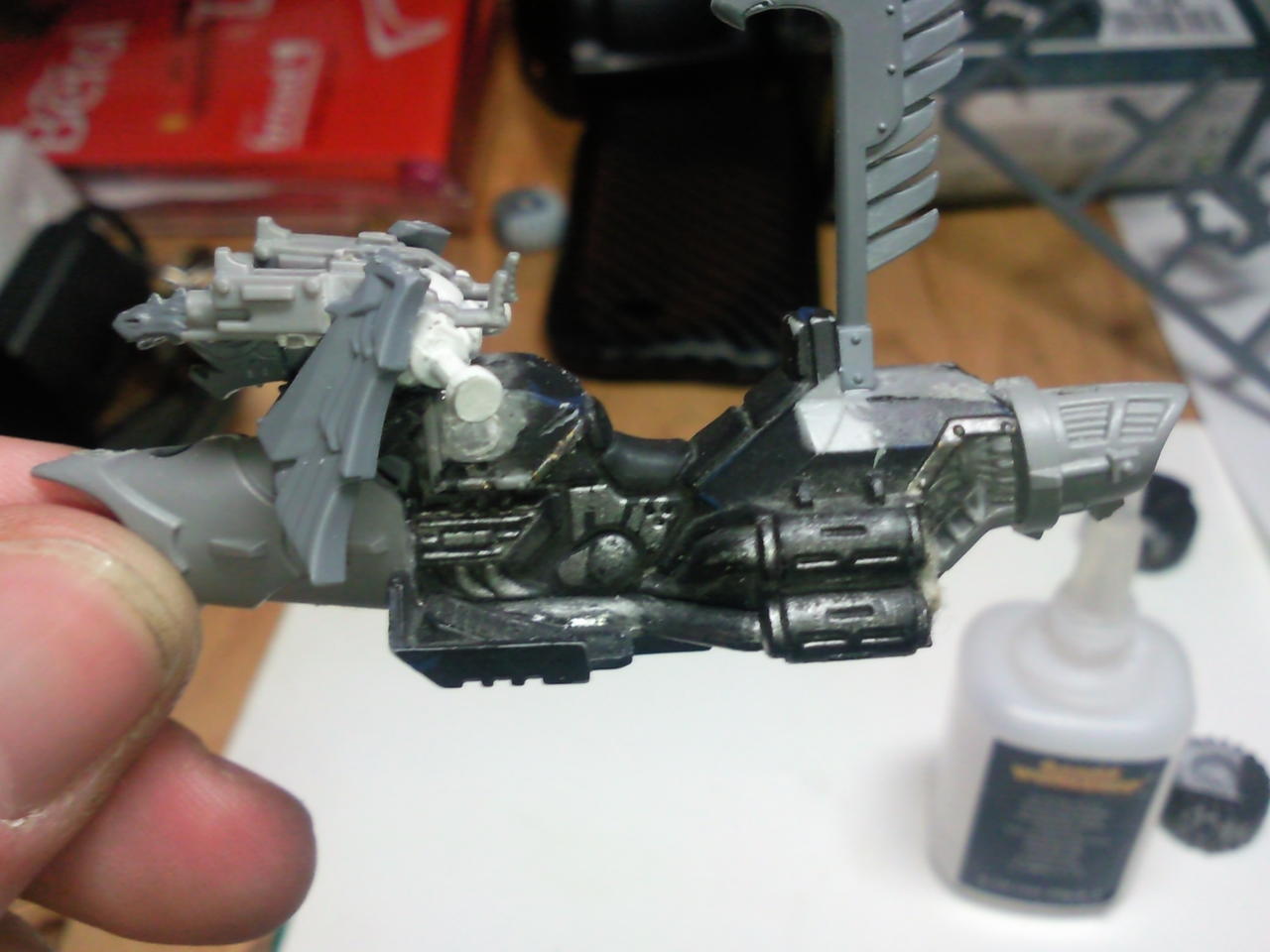 Ya que hacemos una guardia de honor en moto, ( que por codex marines no se puede....) pero puestos a coleccionar un ejercito.. aparte siempre lo podemos usar como escuadra de mando en moto y queda muy molona